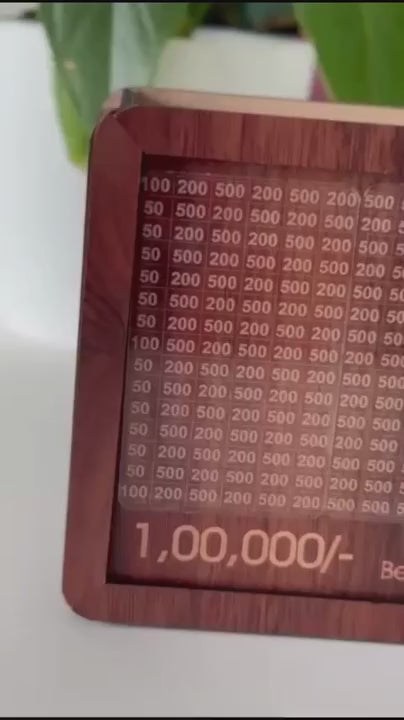 Wooden Piggy Bank: Aim high with our cash saver box designed to help you reach a Rs 100000/- savings goal. Track your progress on the box until you achieve your target. Start today and bring your financial dreams to life.